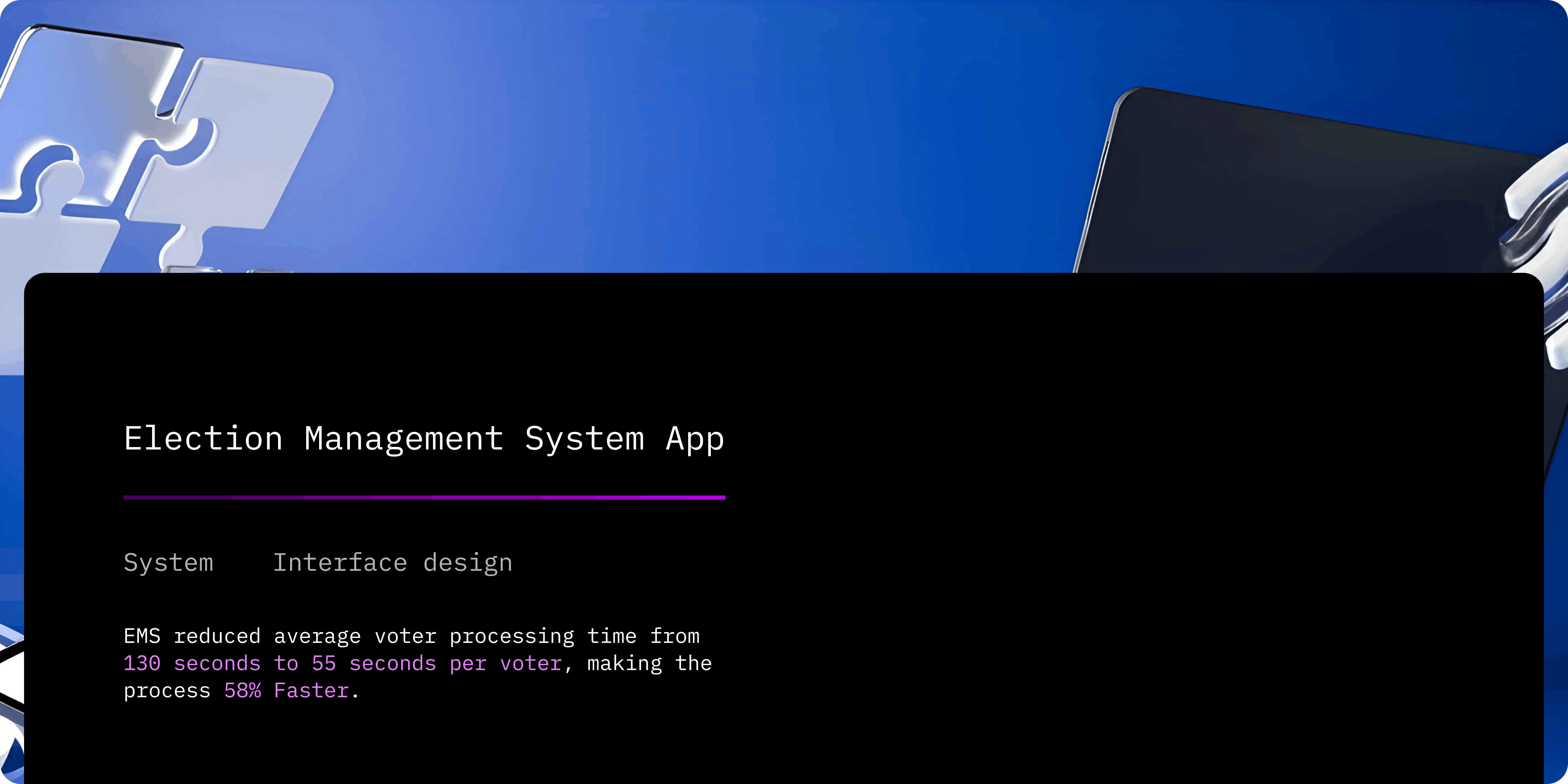 EMS reduced average voter processing time from 130 seconds to 55 seconds per voter, making the process 58% Faster.